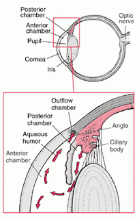 El acuoso debe salir del ojo. Lo hace a través de unas estructuras existentes en una zona muy especial, donde se une la córnea con el iris. Esta zona se llama ángulo iridocorneal, y tiene mucha importancia. Como quiero explicarlo despacito y con dibujos, prefiero dejarlo para otro artículo, que éste ya me ha quedado muy denso.