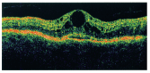 • Edema papilar: cuando hay edema macular, causado por diferentes motivos, en el OCT se encuentra pérdida de depresión foveolar, engrosamiento difuso, cambios quísticos y líquido subfoveal