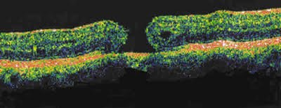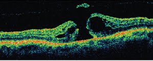 Imagen: Izquierda: Agujero dando desprendimiento de retina.