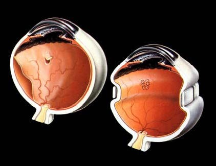 1. DESPRENDIMIENTO DE RETINA REGMATOGENO: Es debido a una rotura en la retina o desgarro, que permiten que el líquido del vítreo que ocupa el centro del globo ocular pase a través de la rotura, entre por debajo de la retina, y así la desprenda.
